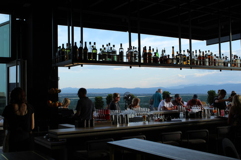 The views stretch toward the Rockies and across the Denver skyline, especially striking at sunset. The cocktail menu is clean and balanced — spirit-forward options, citrus-driven refreshers, and wine selections that make sense for the setting.